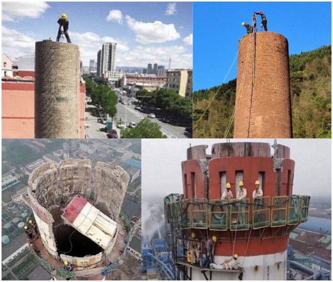 以磚煙囪拆除為例:目前人工拆除磚煙囪主要有: