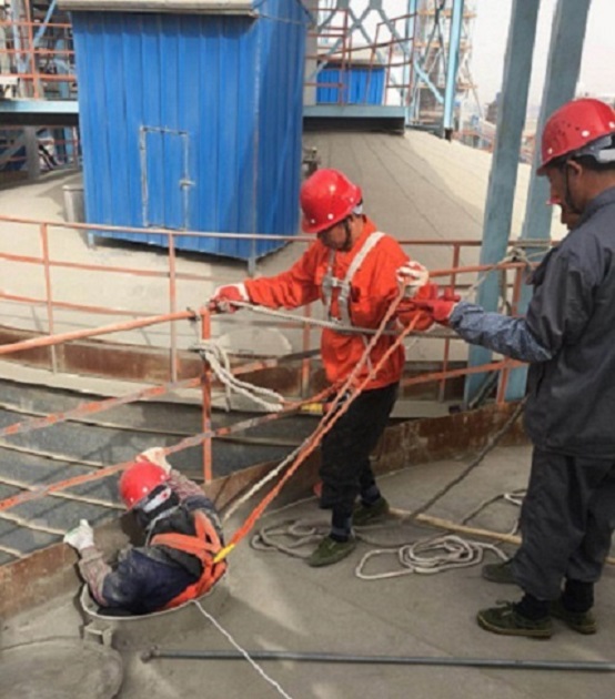 8.人員進(jìn)入庫內(nèi)時,要系兩根安全繩,一根固定在庫外收塵器支架上,一根固定庫內(nèi)梯子上。